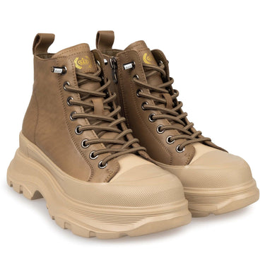 Ghete damă realizate din piele naturală exterior și blăniță subțire la interior. Închiderea se face cu fermoar și șiret elastic. Talpa este ușoară, confortabilă și are înălțimea de 6 cm.