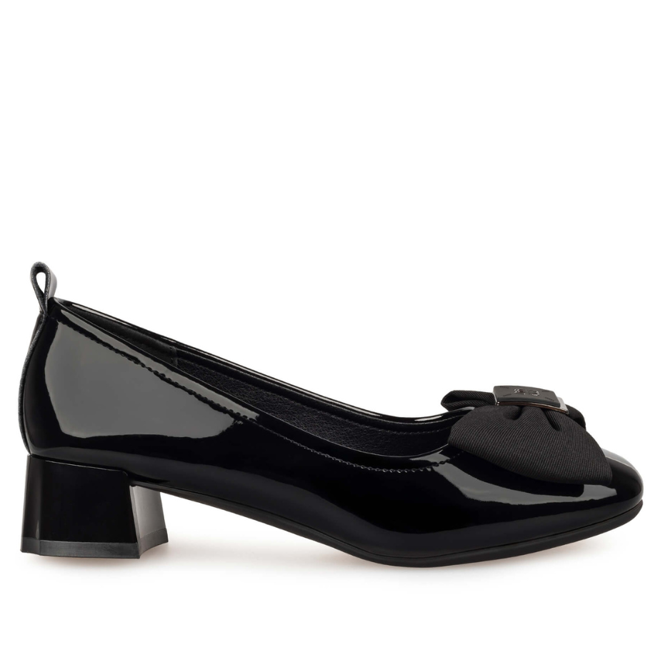 Acești pantofi eleganți din piele naturală lăcuită sunt alegerea perfectă pentru un look sofisticat și confortabil. Designul clasic este îmbogățit de o fundă rafinată aplicată în partea din față, oferind o notă de feminitate și stil.