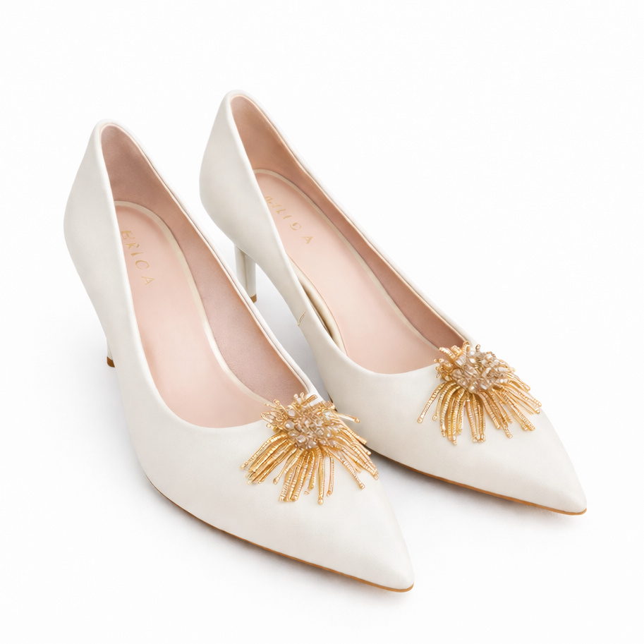 Versatilitate: Pot fi purtați atât la rochii de seară sau ținute de nuntă, cât și la outfituri elegante de zi, fiind ușor de asortat datorită culorii deschise.