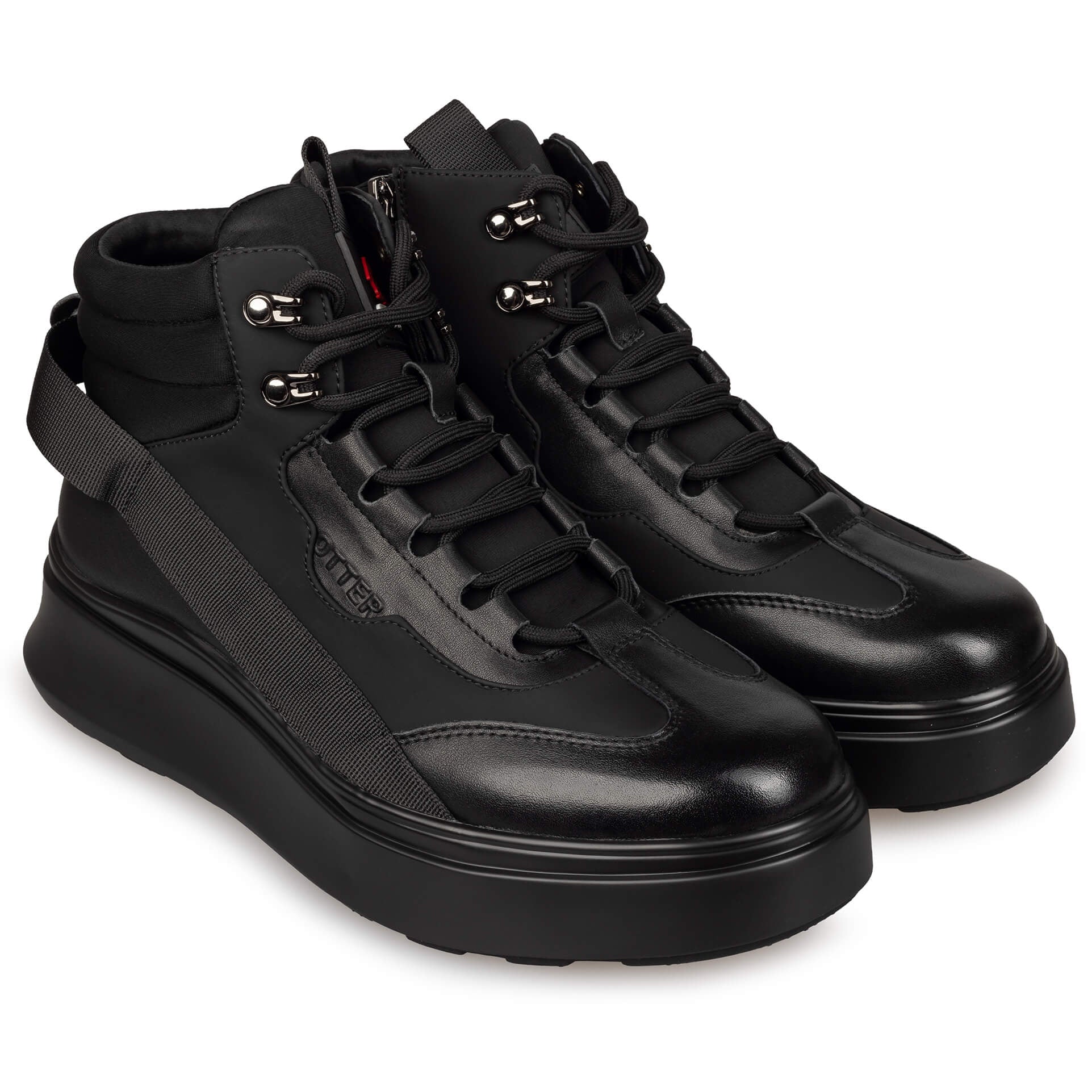 Ghete bărbătești din piele naturală, cu design modern, urban și funcțional. Talpa groasă, ușoară și antiderapantă oferă stabilitate și amortizare la fiecare pas, fiind ideală pentru purtarea zilnică. Designul modern, cu detalii textile și finisaje premium, face din acest model o alegere ideală pentru bărbatul activ și stilat.