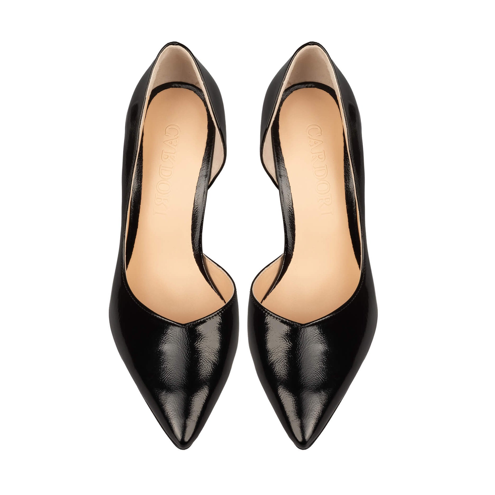 Completează-ți colecția cu un model iconic: pantofii stiletto negri d'Orsay, simbolul feminității și al rafinamentului. Realizați din piele naturală lăcuită, acești pantofi impresionează prin luciul impecabil și designul sofisticat care lasă la vedere curbura piciorului datorită decupajului lateral.