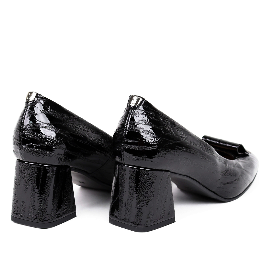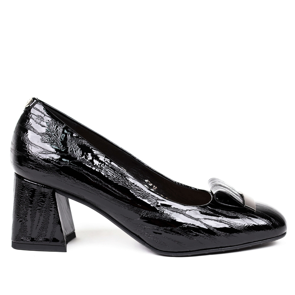 Piele Lăcuită Strălucitoare: Fabricați din piele naturală lăcuită, acești pantofi atrag privirile prin luciul lor intens, adăugând un aspect luxos și sofisticat.