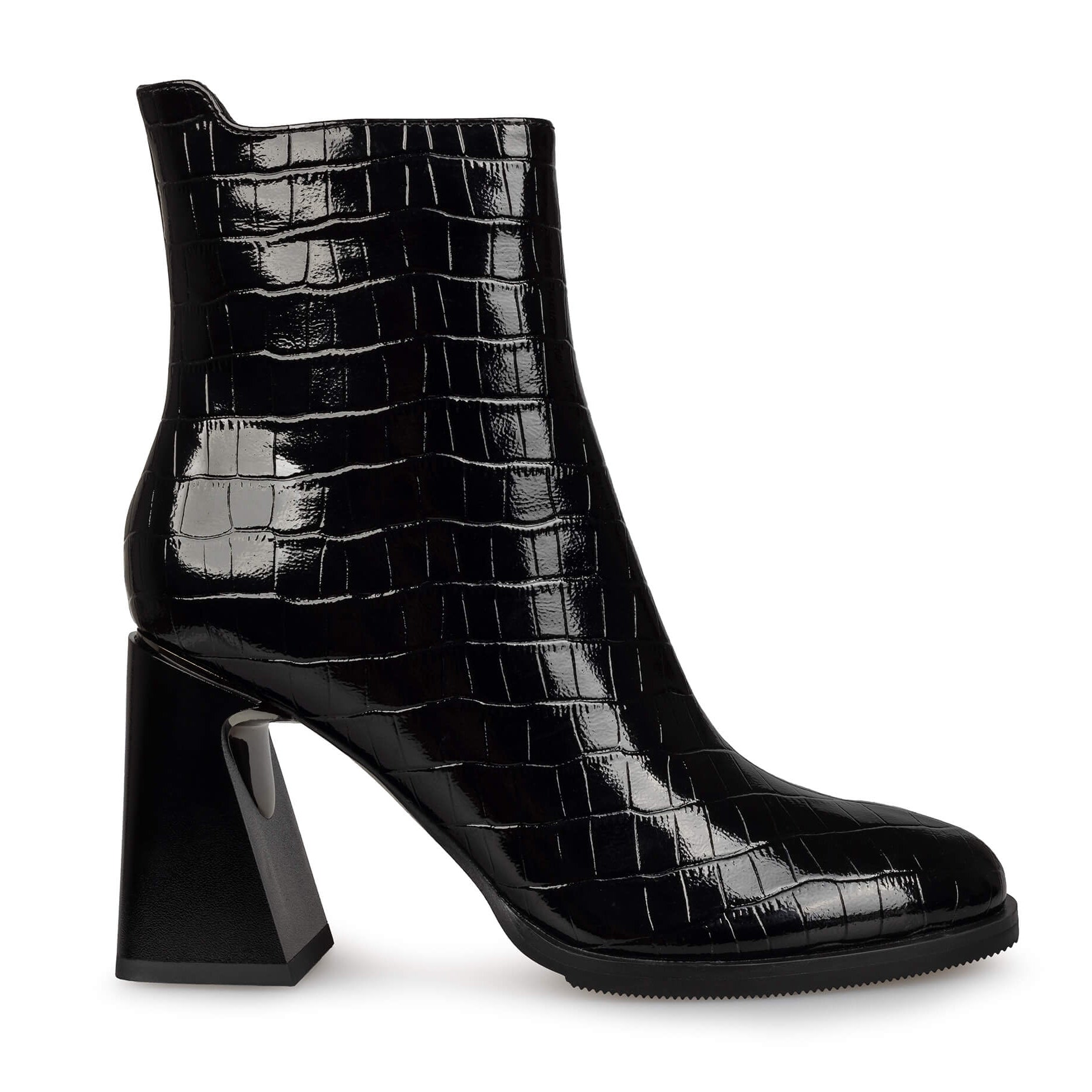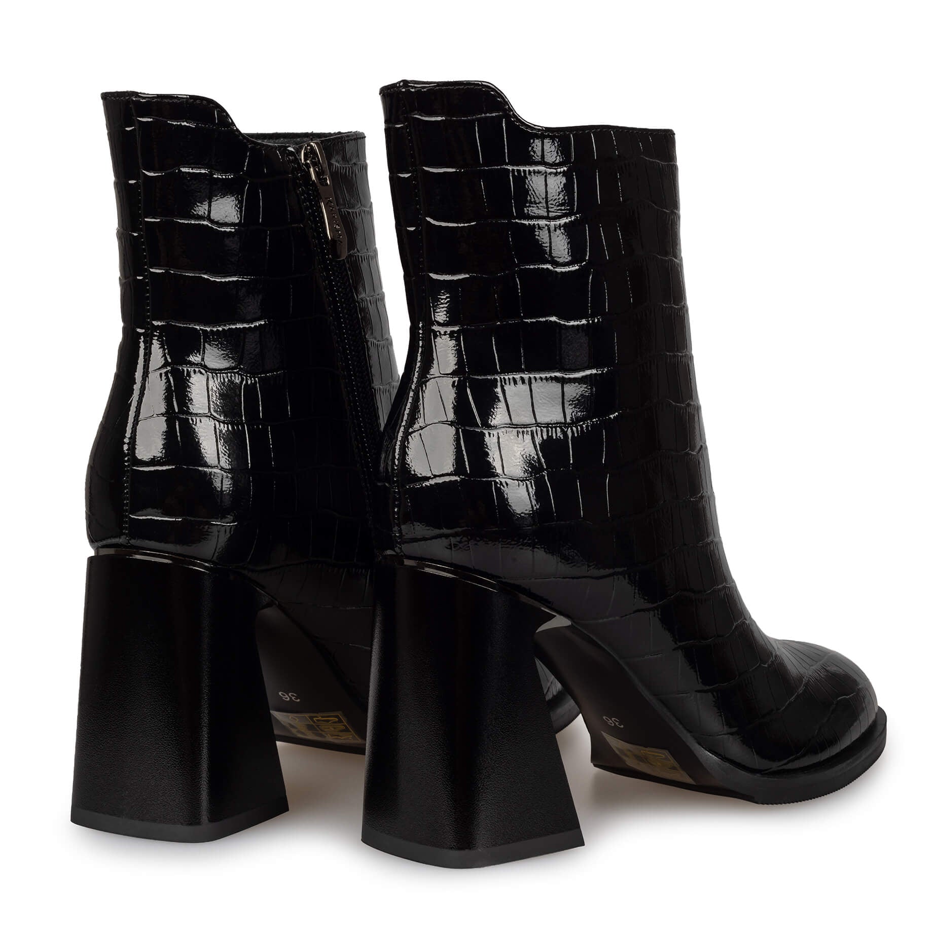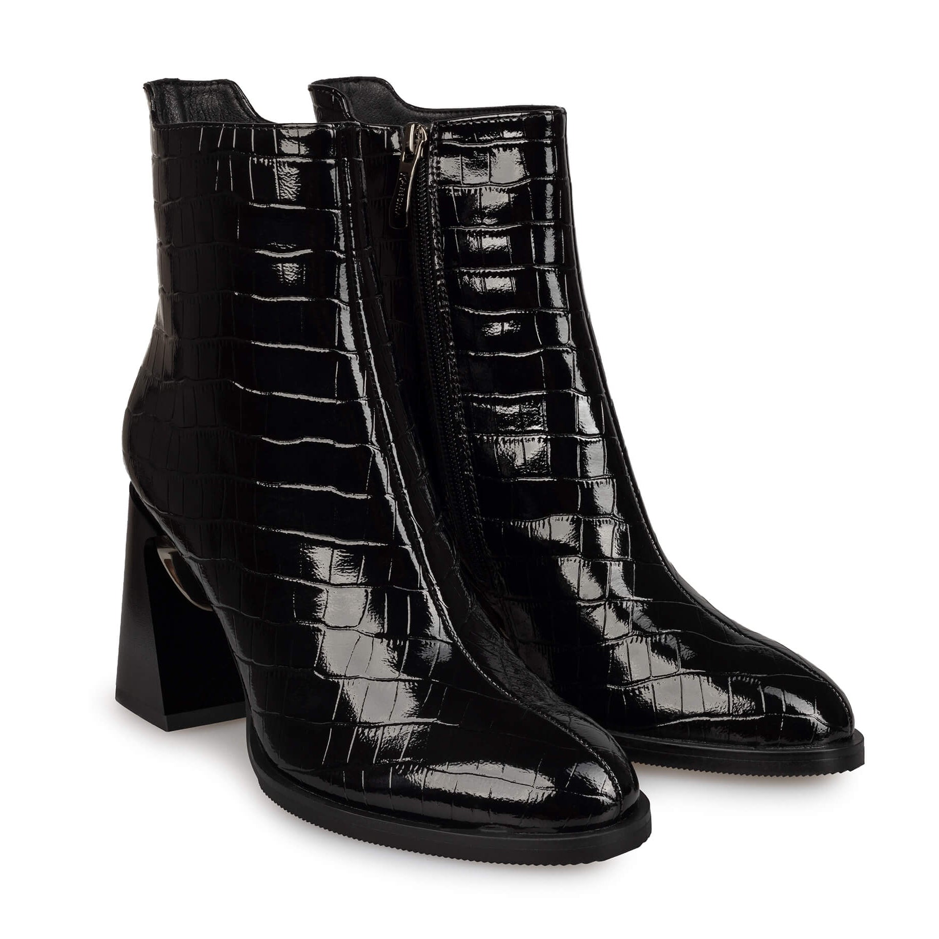 Botine Damă din Piele Naturală Lăcuită Croco VA70003 Black