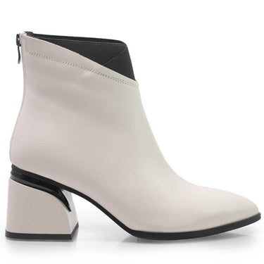 Impresionează cu aceste botine de damă care sfidează convenționalul ! Designul lor combină textura fină a pielii naturale de culoare cremă cu elemente grafice negre, creând un contrast puternic și modern. Sunt piesa centrală de care ai nevoie pentru a transforma o ținută simplă.
