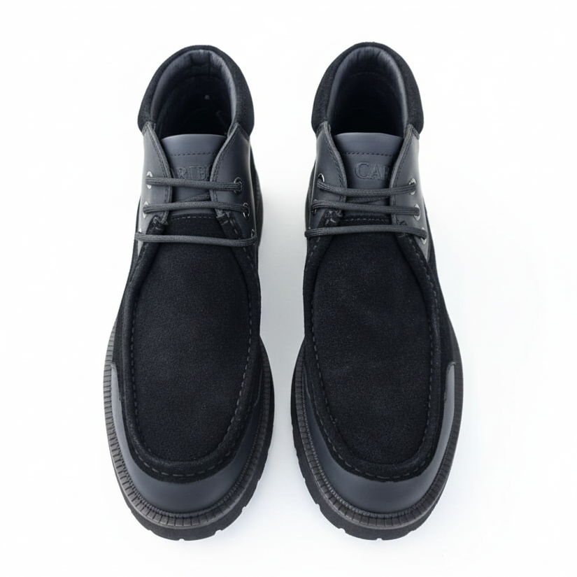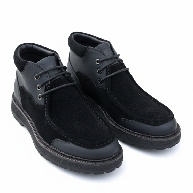 • Design: Siluetă Moc Toe (cu cusătură distinctivă pe vârf) și Chukka Boot (înaltă pe gleznă).