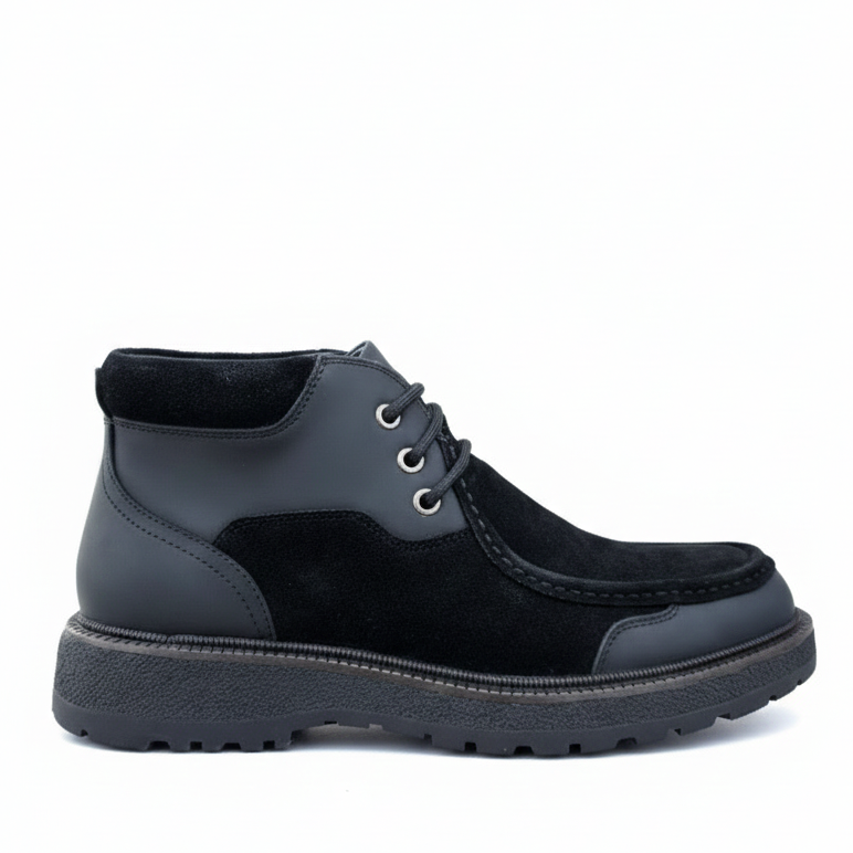 • Materiale Mixte Premium: Realizate din Piele Naturală de înaltă calitate, care combină pielea Suede/Velur (în zona frontală) cu Piele Netedă (pe contururi și gleznă), oferind un contrast vizual subtil.