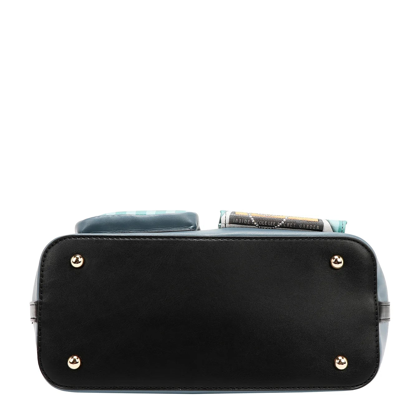 Un buzunar interior cu fermoar în perete, la spate, cu încuietoare din piele ecologică pentru breloc.