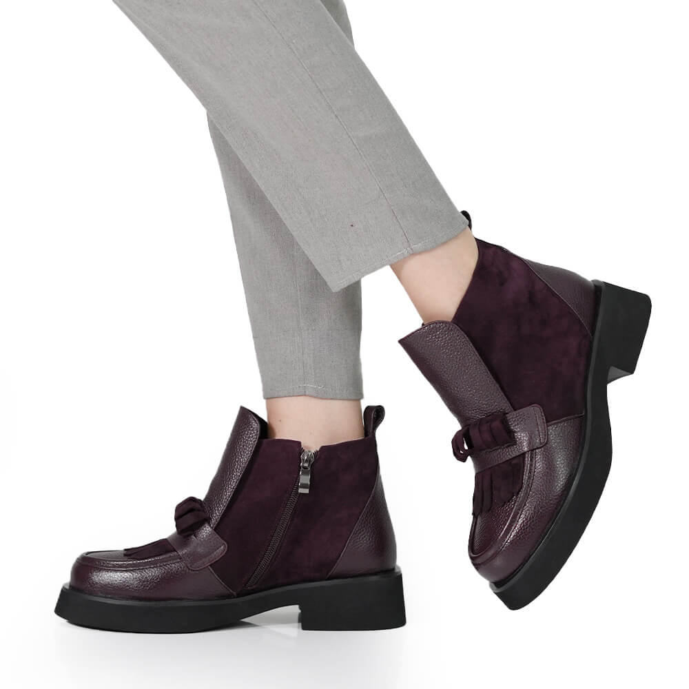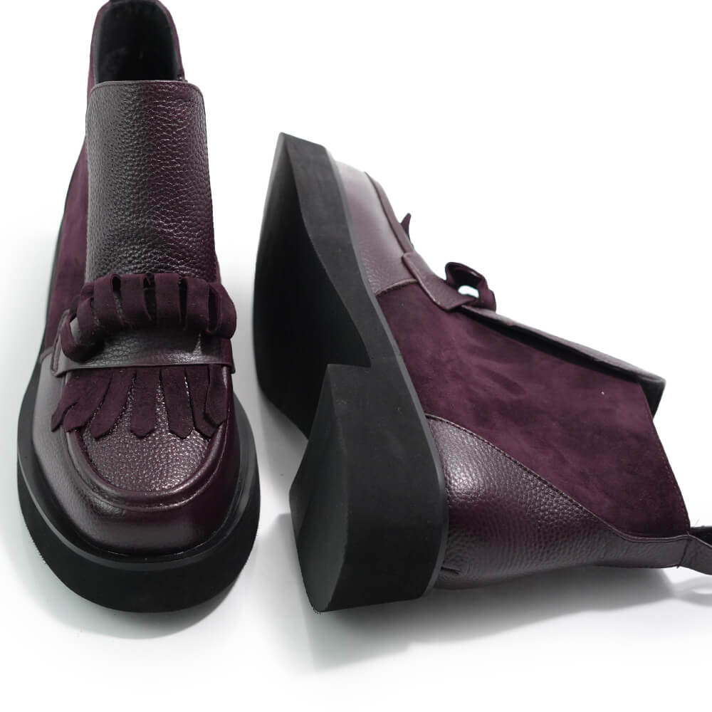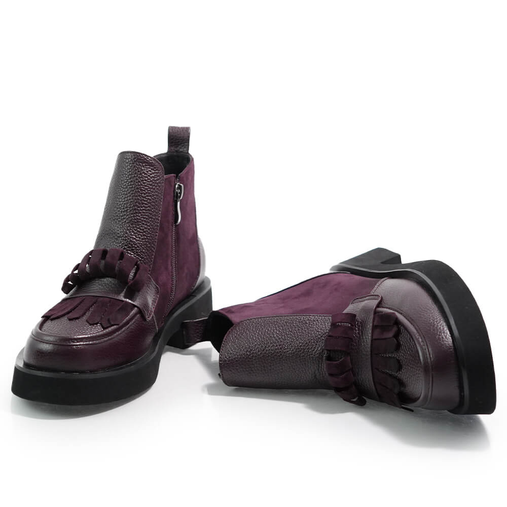 Ghetele de damă Fiore Fino îmbină eleganța cu confortul, fiind realizate din piele naturală de calitate superioară, cu inserții de piele întoarsă pentru un efect modern. Modelul este pus în valoare de detaliul cu franjuri și accesoriul decorativ, adăugând un aer sofisticat și unic.