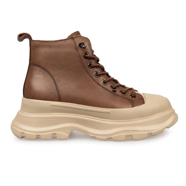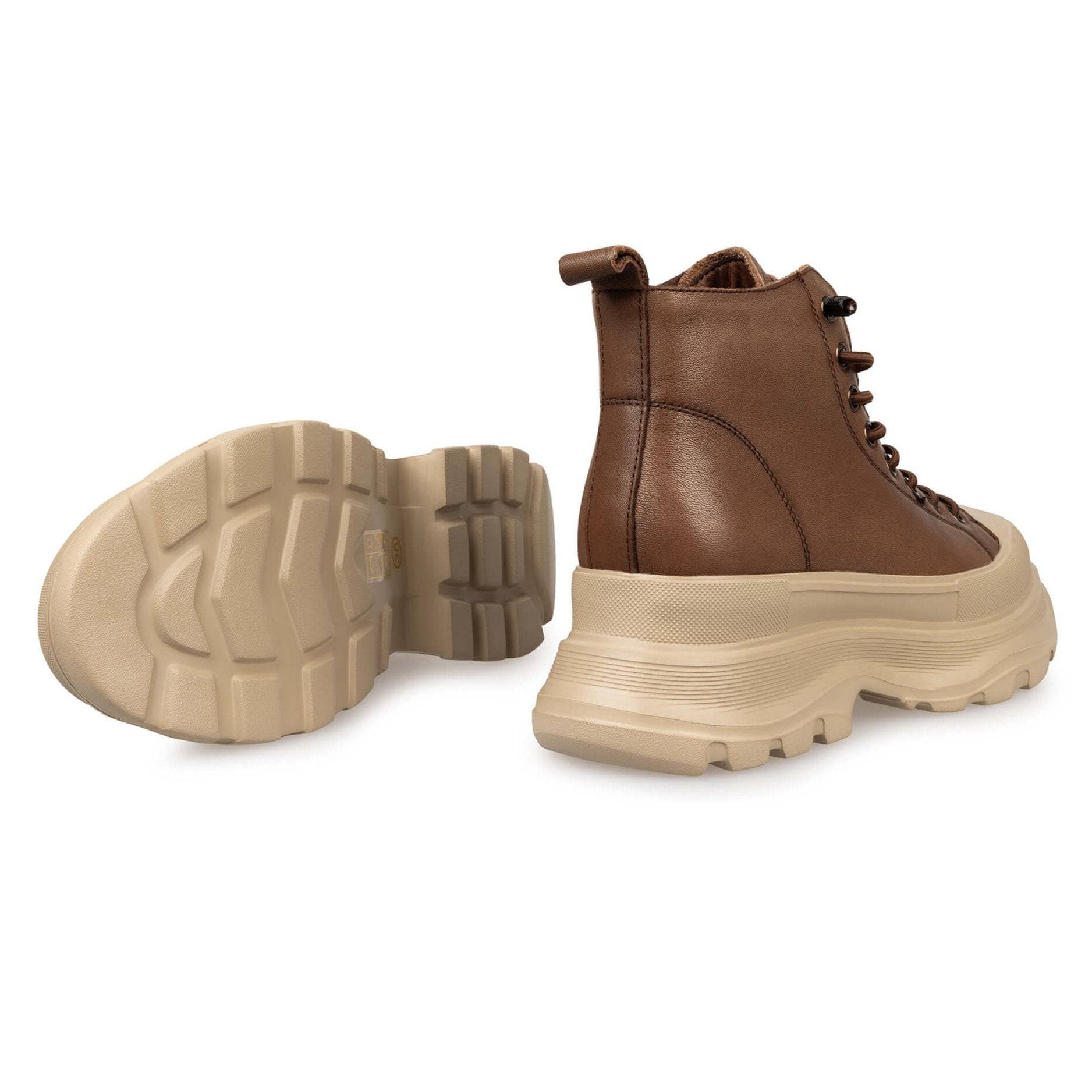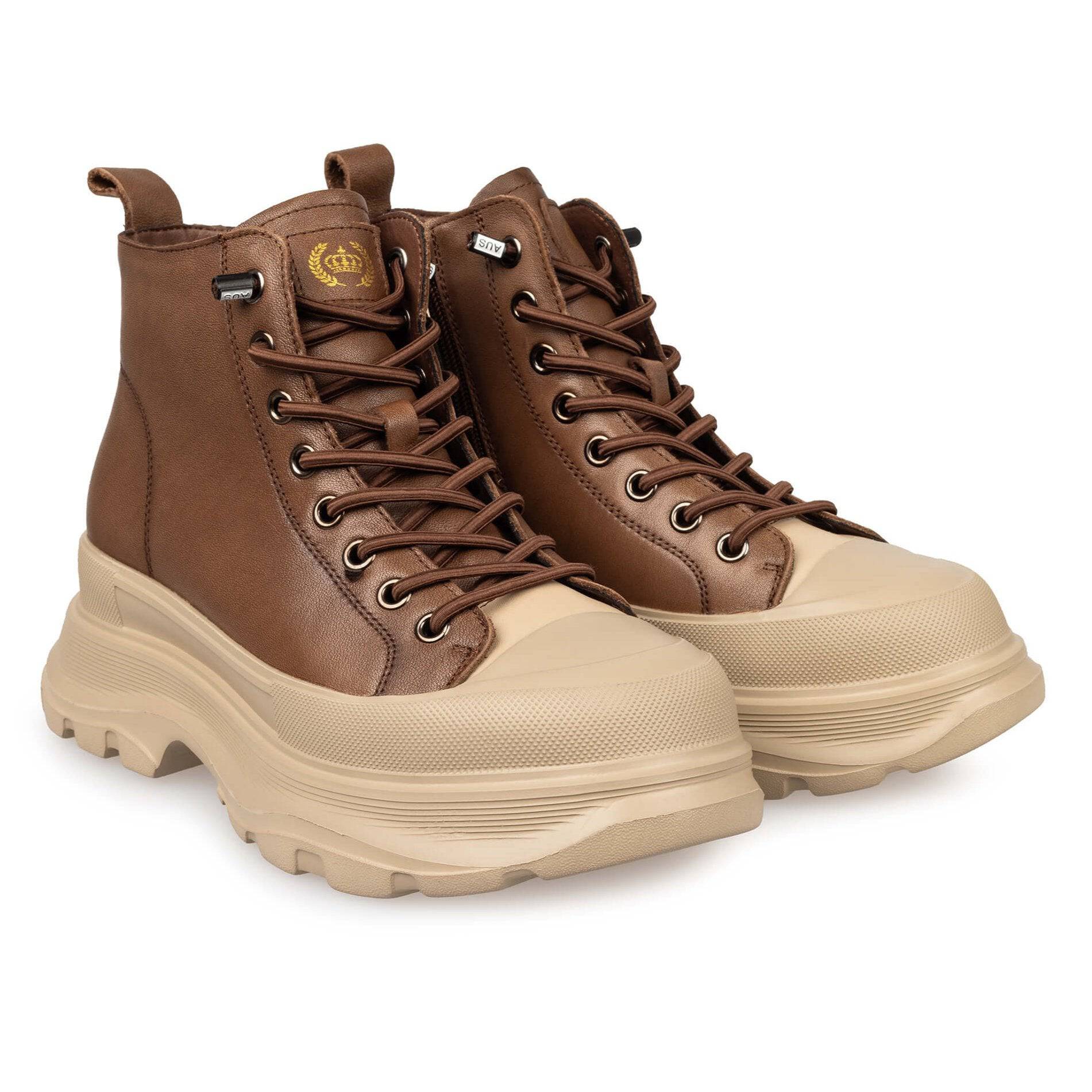 Ghete damă realizate din piele naturală exterior și blăniță subțire la interior. Închiderea se face cu fermoar și șiret elastic. Talpa este ușoară, confortabilă și are înălțimea de 6 cm.