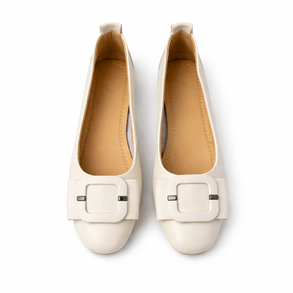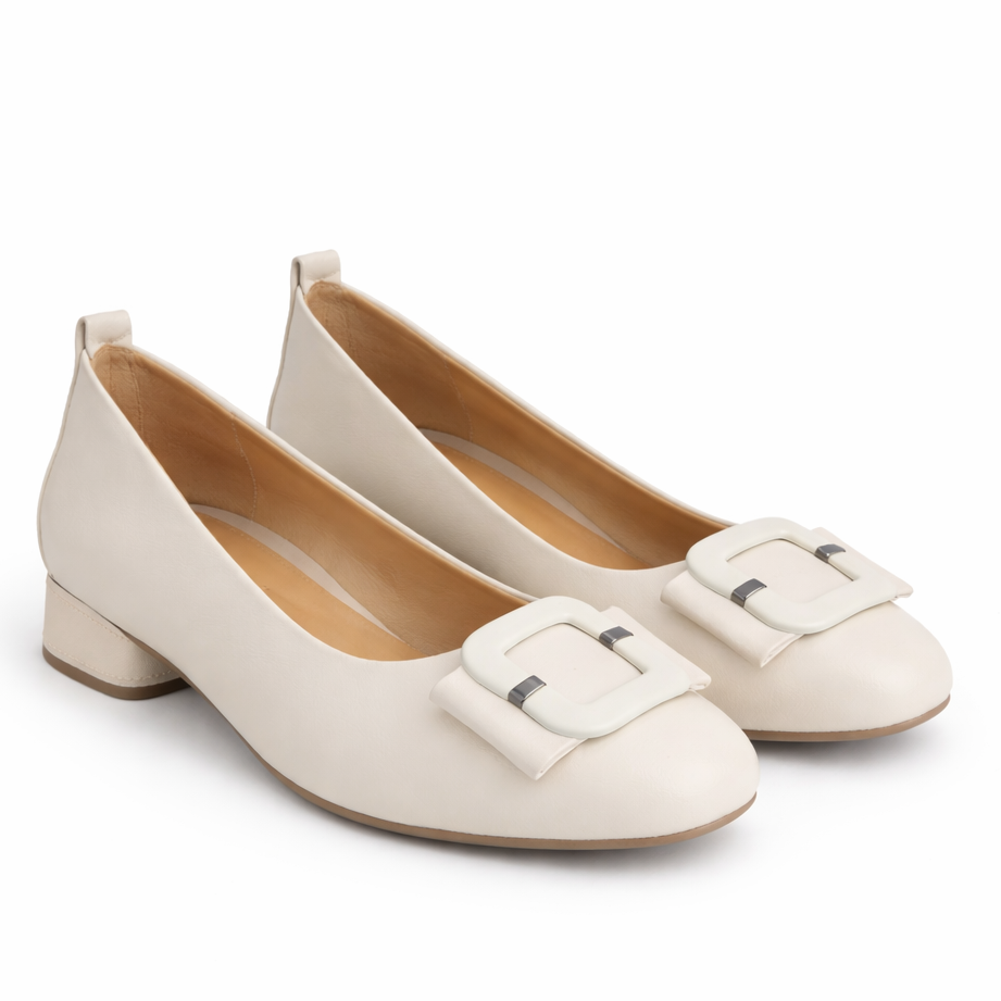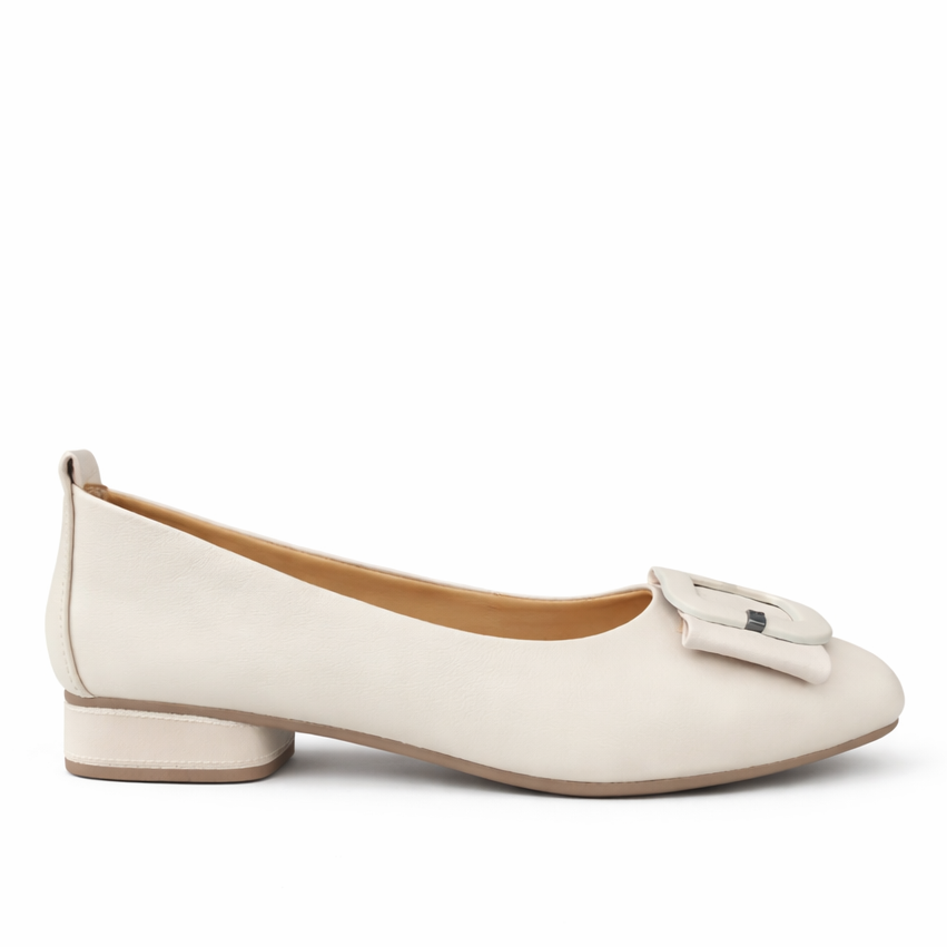 Pantofi Tip Balerini Crem FMZ 510-1, Piele Naturală