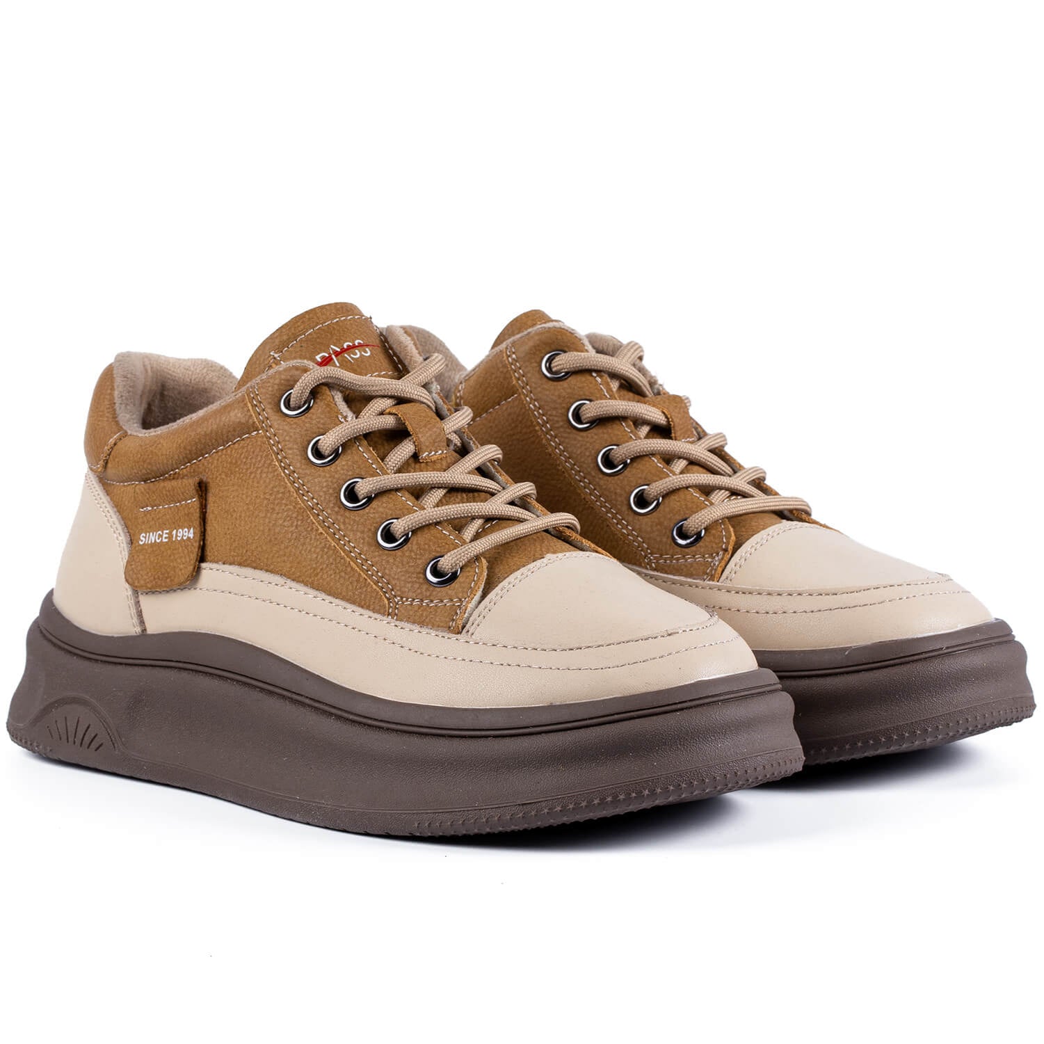 Design Bi-Color Versatil: Nuanțele neutre de bej și camel sunt ușor de asortat, oferind flexibilitate maximă pentru diverse stiluri.